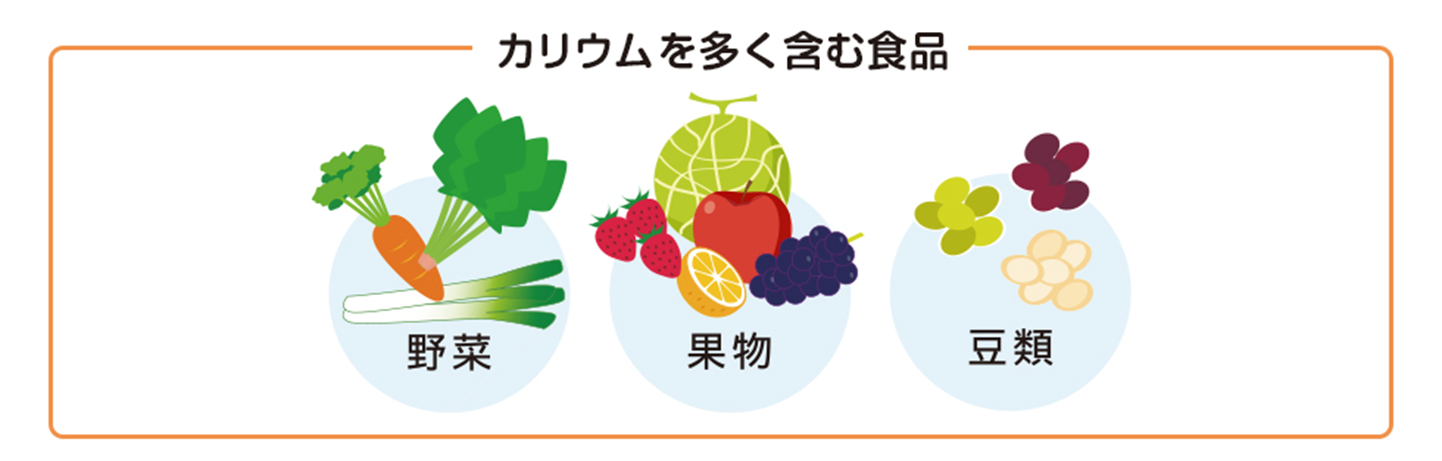 日々の食事にカリウム豊富な野菜や果物を積極的に取り入れて、健康な毎日を送りましょう。